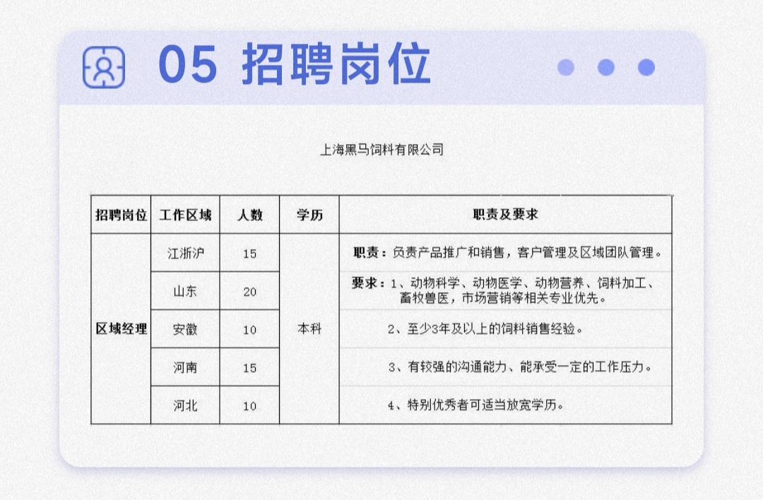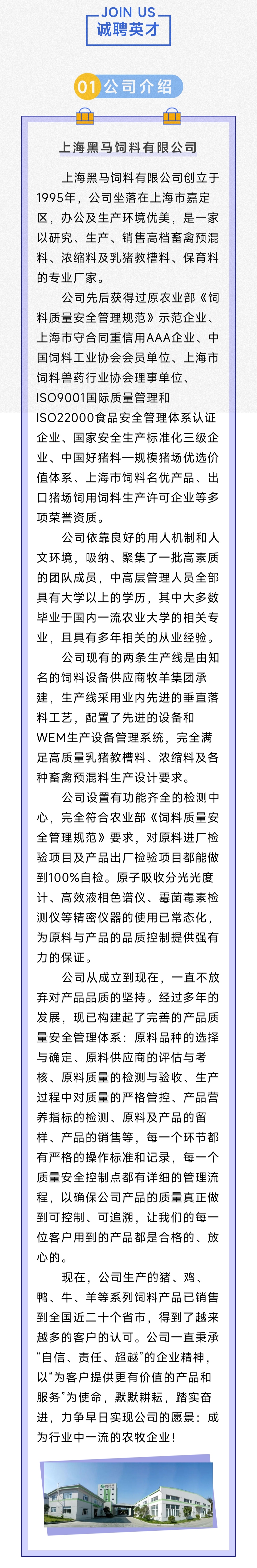 您當(dāng)前所在位置:首頁(yè) > 新聞中心 > 企業(yè)動(dòng)態(tài) 企業(yè)動(dòng)態(tài) 誠(chéng)聘精英|上海黑馬飼料2022年人才招聘公告發(fā)布 分享到:點(diǎn)擊次數(shù): 更新時(shí)間:2022-03-04 19:30:10 【打印此頁(yè)】 【關(guān)閉】 上一條:3·15 消費(fèi)者權(quán)益日 | 黑馬飼料,27年好品質(zhì),為您保駕護(hù)航! 下一條:2021年全國(guó)飼料工業(yè)發(fā)展概況